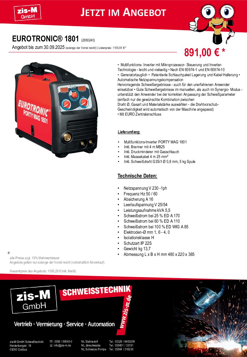 Gesamtpreis des Angebots: 1060,29 € inkl. MwSt. (2950240)